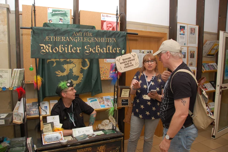 Zuweilen gibt es aber auch SFCD-Mitglieder, die den Drang haben, selbst etwas zu organisieren, zu gestalten. Zu denen gehört beispielsweise Matthew Kunkel, bei dessen Schloßcon der SFCD zuletzt 2022 in Schwerin zu Gast war. Dazu gehört insbesondere aber auch Ehrenmitglied, langjährige SFCD-Vorsitzende und bekennender Atlan-Fan Birgit „BiFi“ Fischer.
